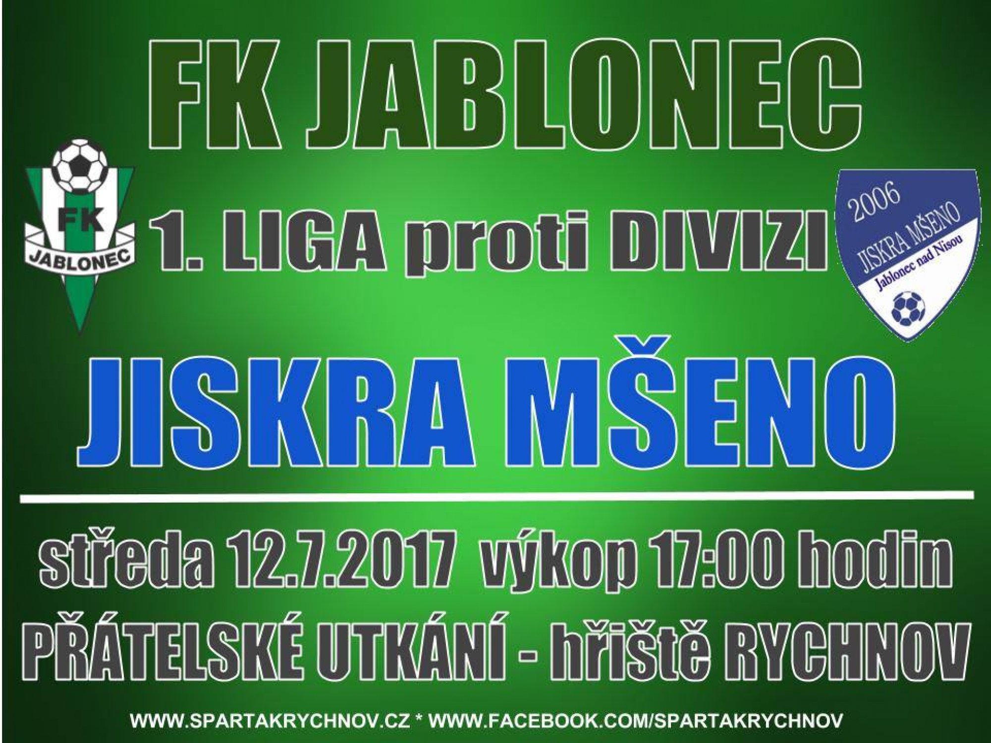 Pěkný propagační počin se podařil rychnovským fotbalovým činovníkům. Uprostřed července se jim podařilo dojednat přátelský fotbalový zápas mezi prvoligovým týmem FK Jablonec a divizní Jiskrou Mšeno. V dnešní době virtuálních sportů šlo o velmi příjemný počin, kdy zejména mladí fotbalisté v Rychnově mohli zblízka vidět hvězdy, ke kterým možná leckteří vzhlížejí.