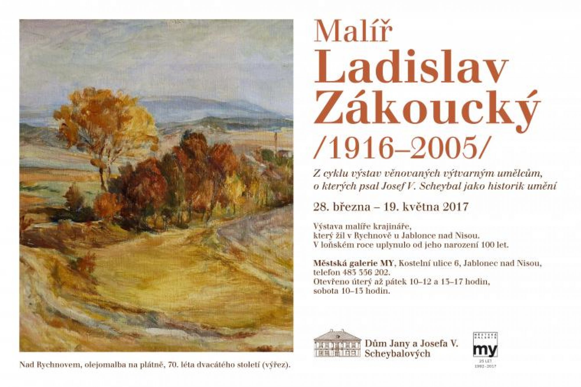 28. března byla v Domě Jany a Josefa Scheybalových otevřena výstava nejvýznamnějšího poválečného rychnovského malíře Ladislava Zákouckého, který by v loňském roce oslavil sté narozeniny. Výstava potrvá do 19. května.